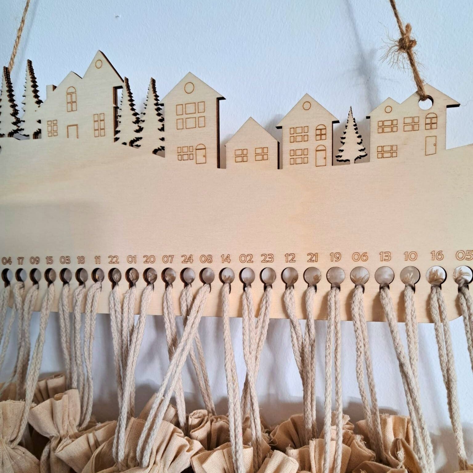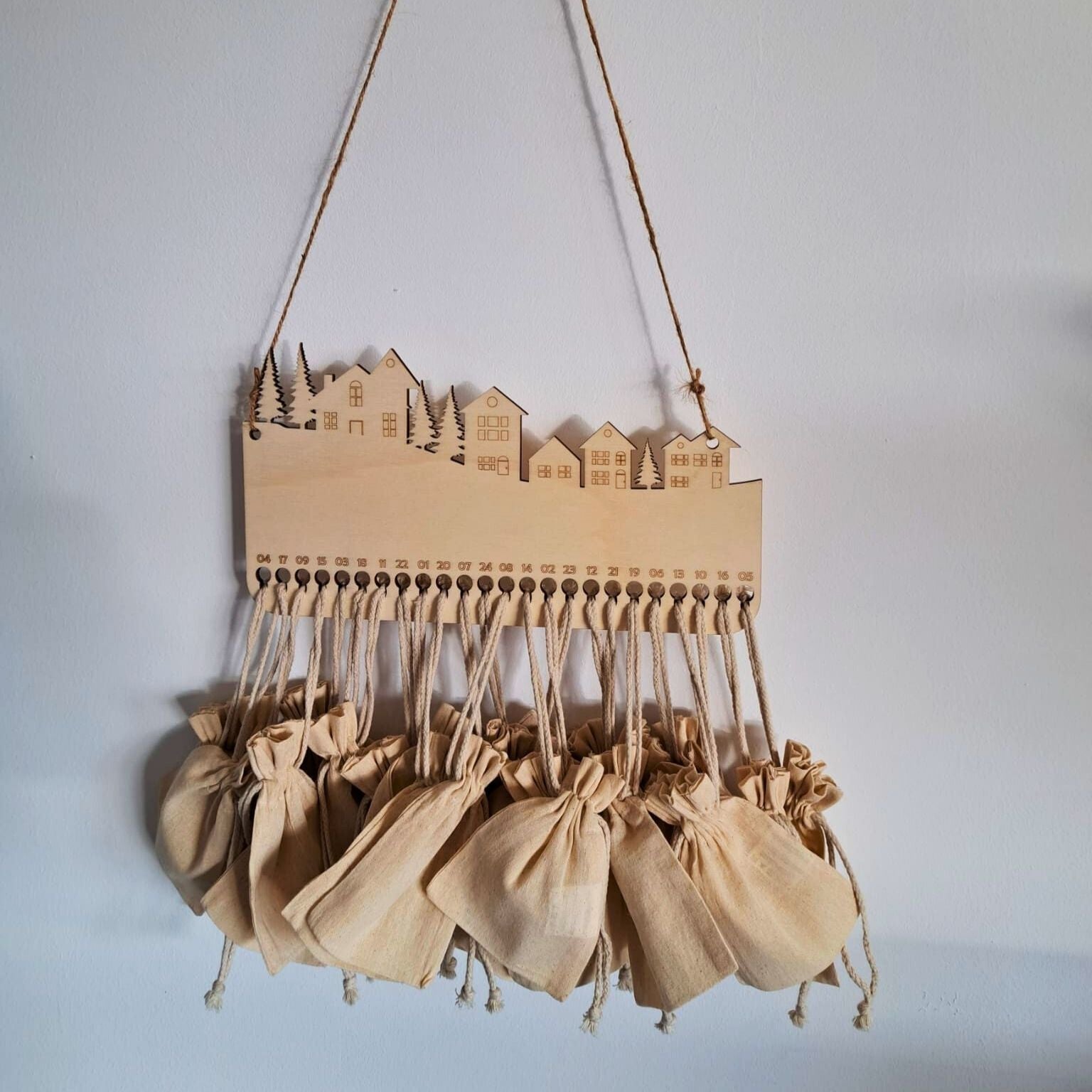 Un calendari decoratiu i familiar, ideal per viure la màgia de l’Advent i donar un aire càlid i artesanal a la decoració de Nadal.